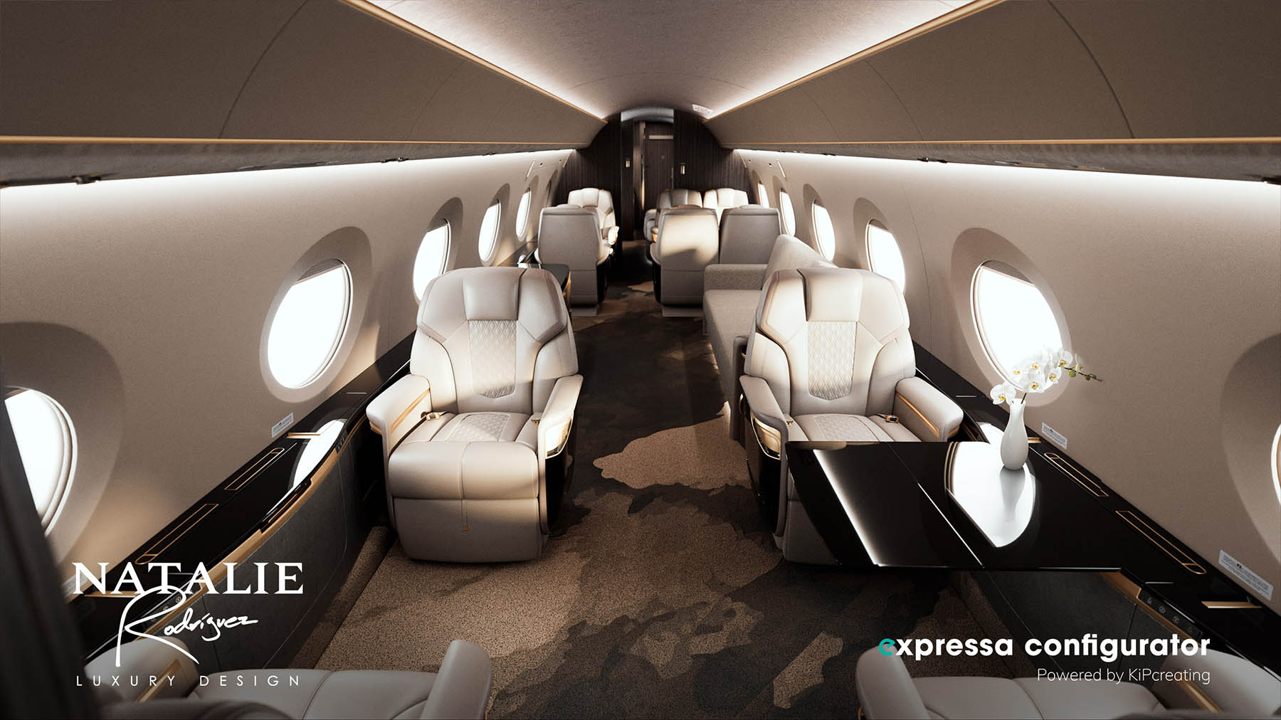 The Gulfstream G700 “Prowess” interior concept, designed by Natalie Rodríguez and brought to life through the Expressa Configurator, stands as a perfect example of design and technology working in harmony.