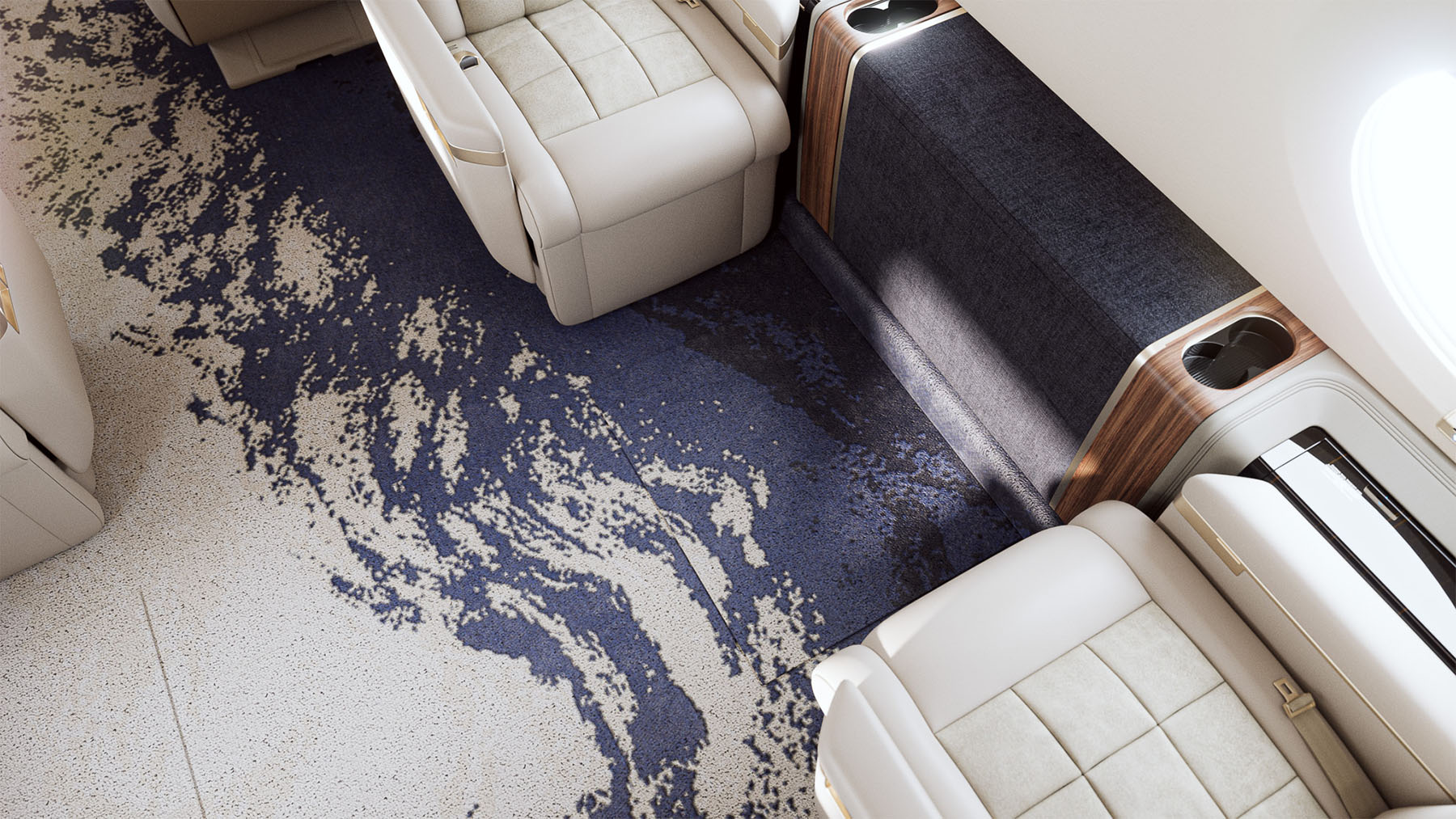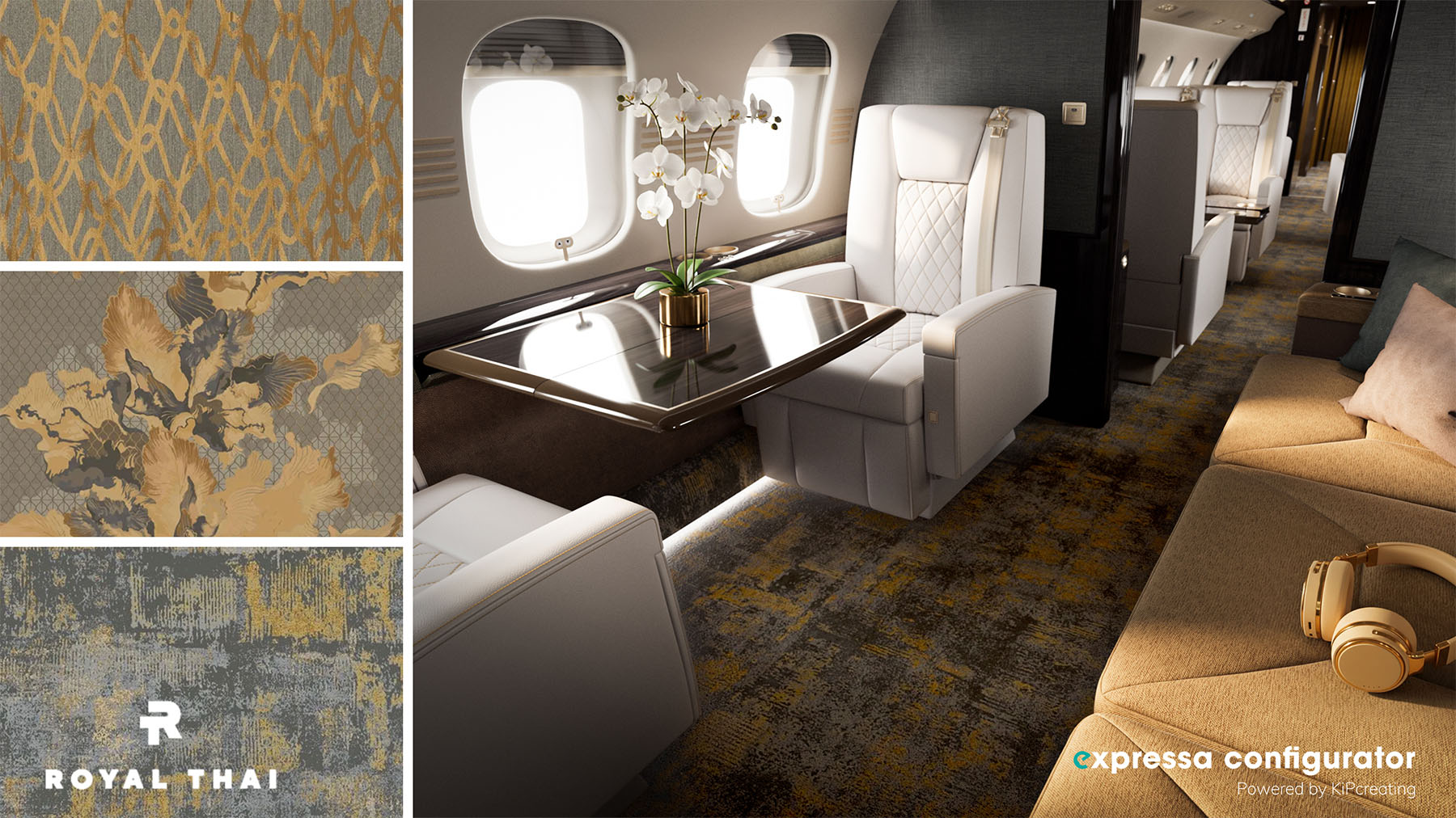 The Tallulah aircraft carpet by Scott Group became the starting point for a fully realized interior concept developed using the Expressa Configurator. This collaboration highlights how a single digital material can spark an entire design narrative while accelerating aircraft interior design workflows through real-time visualization.